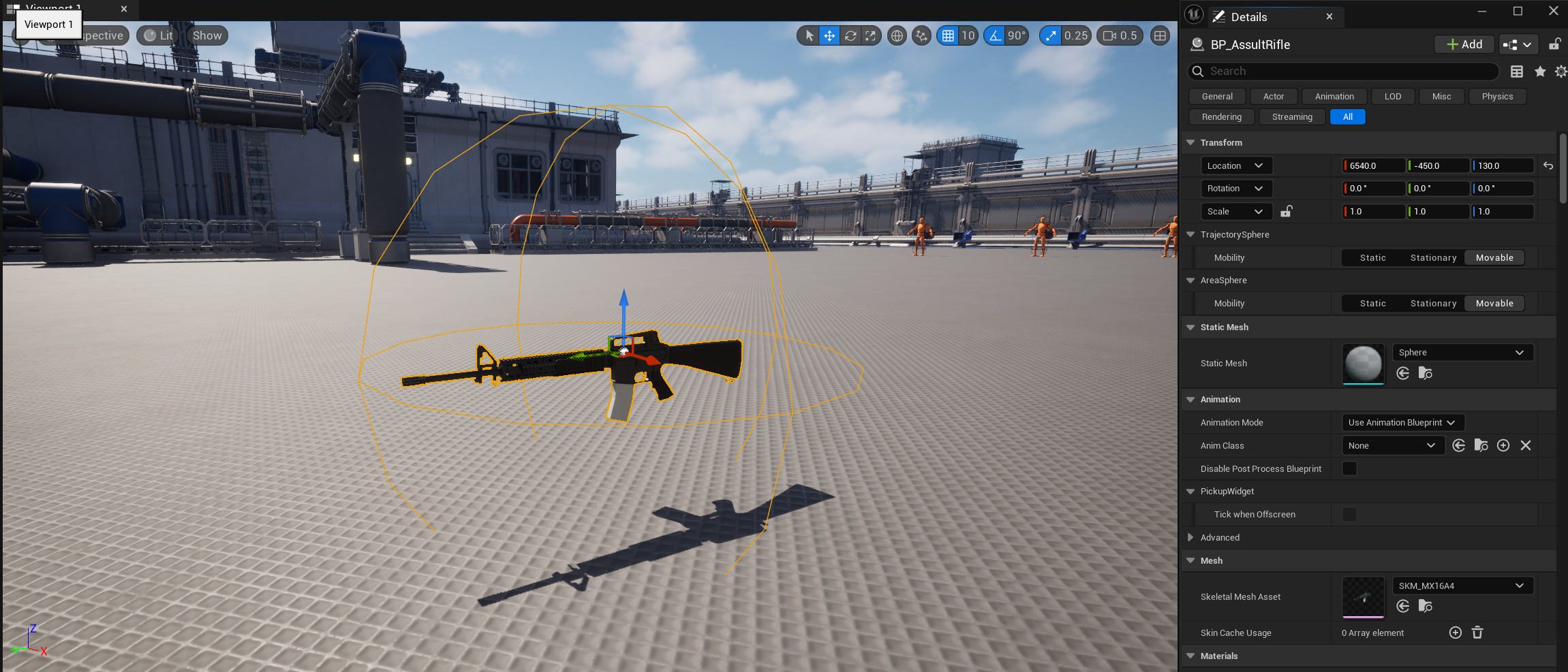 (TrajectorySphere는 포인터 변수이기에 디테일 패널에 따로 나타나지 않는다.)